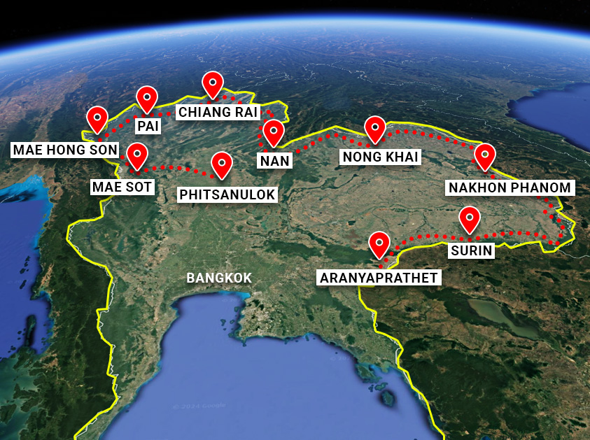 ทีมนักปั่นทั้งสองคนจะเริ่มต้นด้วยการนั่งรถไฟไปพร้อมกับจักรยานคู่ใจ มุ่งหน้าสู่จังหวัดพิษณุโลก จากนั้นจะเริ่มการผจญภัยด้วยการปั่นจักรยานรอบตะเข็บชายแดนภาคเหนือและภาคอีสาน โดยจุดเริ่มต้นของการปั่นในครั้งนี้จะเริ่มที่จังหวัดสุโขทัย ผ่านตาก แม่สอด แม่ฮ่องสอน ปาย เชียงราย น่าน แพร่ และอุตรดิตถ์ และมุ่งหน้าเข้าสู่ภาคตะวันออกเฉียงเหนือไปตามแม่น้ำโขง ซึ่งจะปั่นผ่านจังหวัดหนองคาย นครพนม มุกดาหารอุบลราชธานี และบุรีรัมย์ การเดินทางของเขาทั้งสองคนจะสิ้นสุดลงที่อรัญประเทศ รวมระยะทางกว่า 3,000 กิโลเมตร และไต่ความชันกว่า 27,000 เมตร ระหว่างทางจะมีการมอบอุปกรณ์กู้ภัยแก่อาสาสมัครฯ ตามจุดต่าง ๆ เพื่อเป็นขวัญกำลังใจ พร้อมแบ่งปันประสบการณ์ในการปั่นในครั้งนี้ผ่านโซเชียลมีเดีย อีกทั้งจะมีการพบปะพูดคุยกับอาสาสมัครผู้ซึ่งอุทิศตนเพื่อภารกิจกู้ภัยไปพร้อม ๆ กันตลอดเส้นทาง ทุกกิโลเมตรทุกความชัน ถือเป็นการสร้างความตระหนักถึงความเสียสละของทีมอาสากู้ภัย